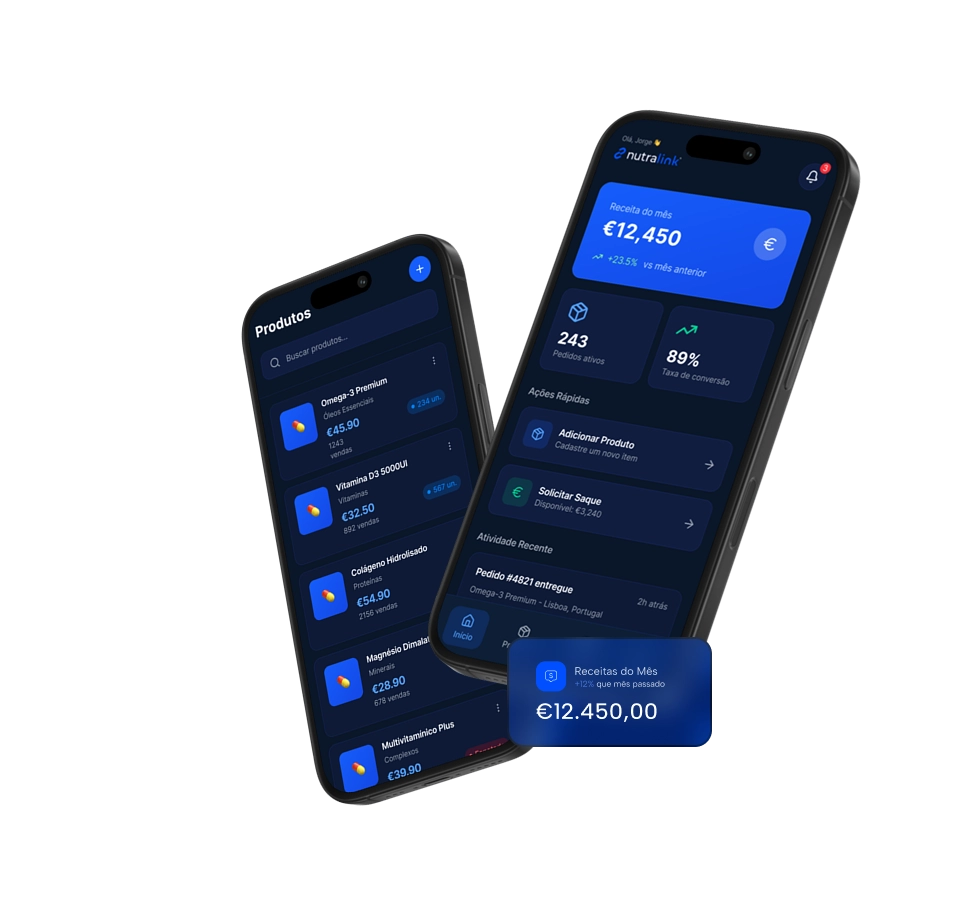 A Nutralink conecta o seu produto a uma operação completa de logística, afiliados e pagamentos em Cash on Delivery, para você focar em vender, testar ofertas e trabalhar seus afiliados enquanto cuidamos do resto.